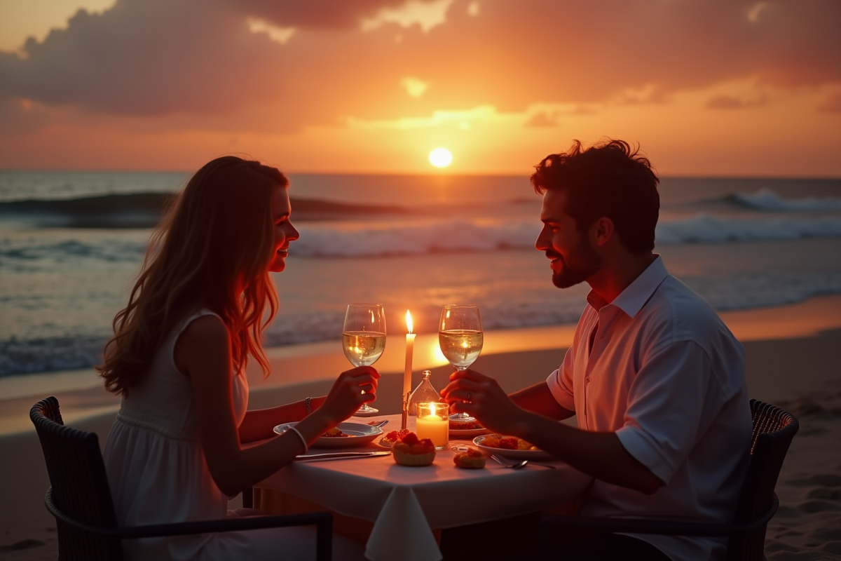 - Dîner aux chandelles sur une plage ou dans un lieu d’exception.