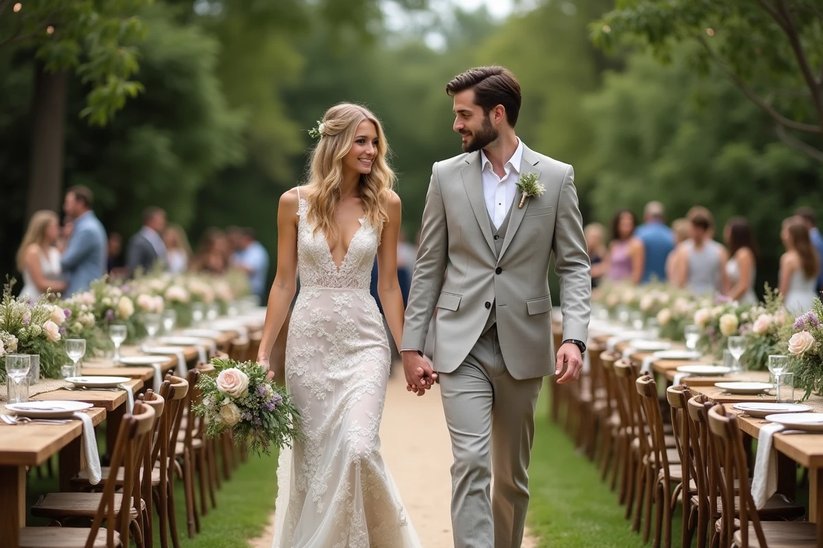 Imaginons une réception de mariage où la nature se mêle à l’élégance. Une décoration champêtre peut transformer un simple espace en un véritable éden. Pensez à des tables ornées de nappes en lin, des bouquets de fleurs sauvages et des guirlandes lumineuses suspendues aux branches des arbres.